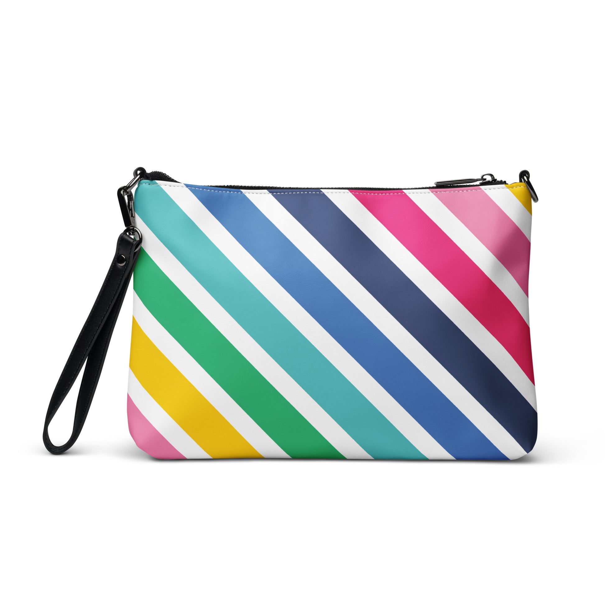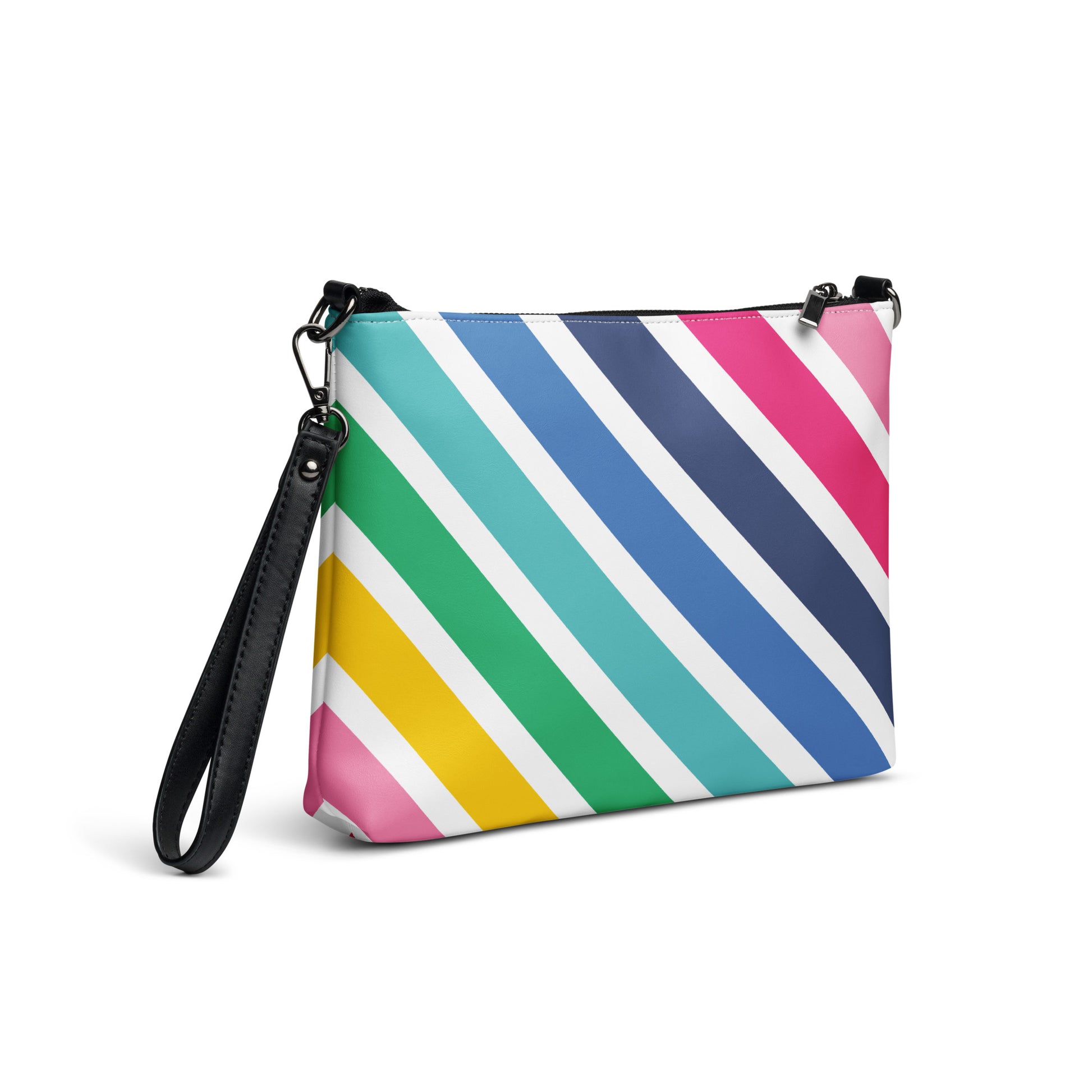Keep your style on point and your hands free with our versatile crossbody bag. It’s made of premium faux leather and features dark gray hardware. Thanks to the zip-top closure and multiple inside pockets, you can keep your essentials secure and organized. Transform this crossbody bag with removable wrist and shoulder straps to style it for day-to-night looks.